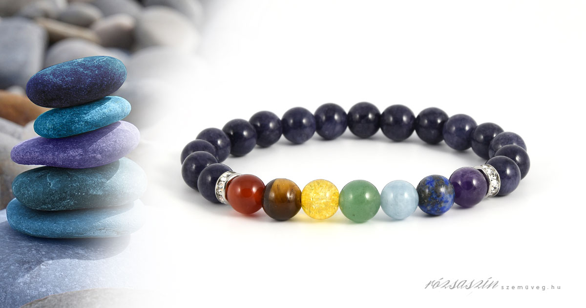 Az ásványkarkötő a különböző csakrákra a következő ásványokat tartalmazza: