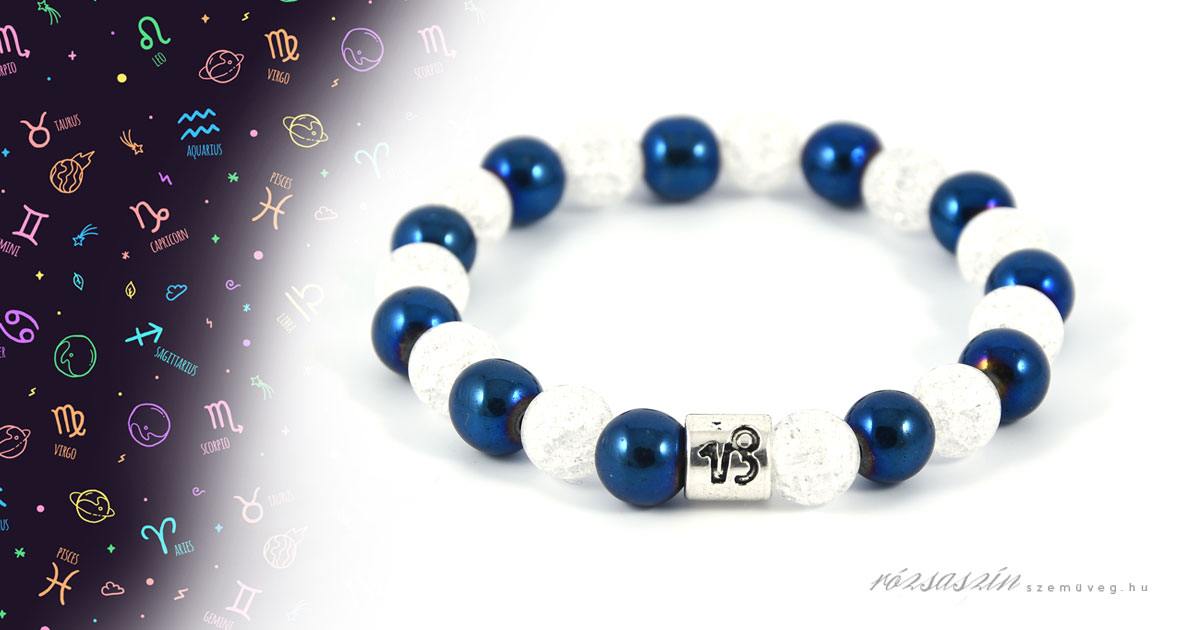 8mm-es Hematit, Hegyikristály ásványokból, fém horoszkóp köztessel
