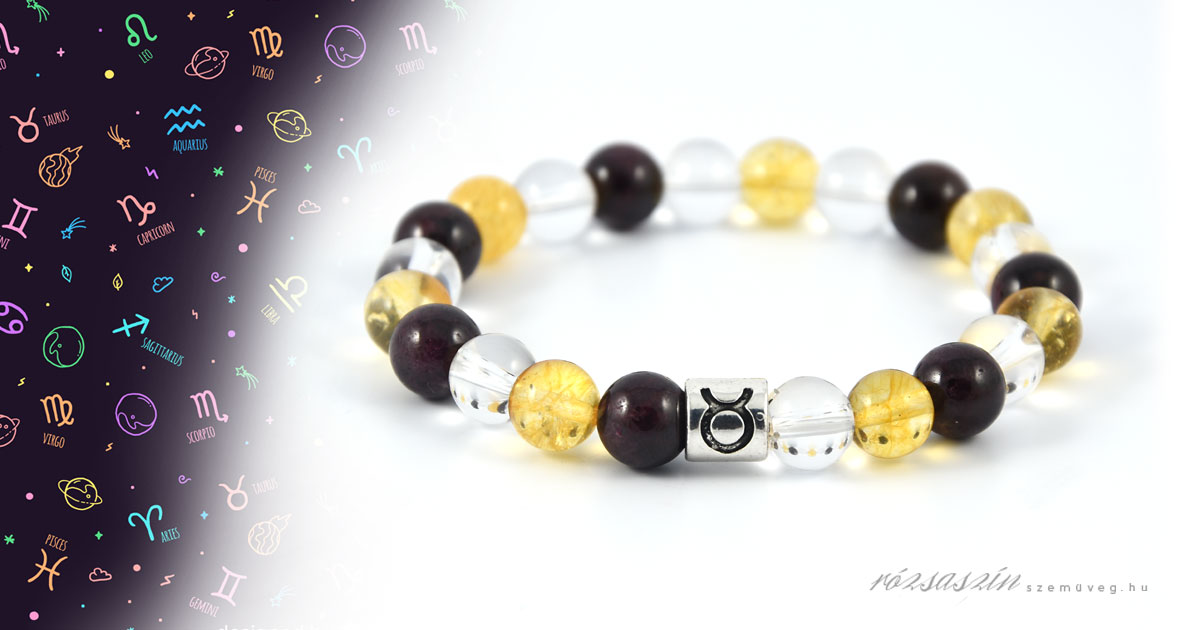 A Bika ásvány karkötő Citrin Gránát Hegyikristály ásványokból készült.