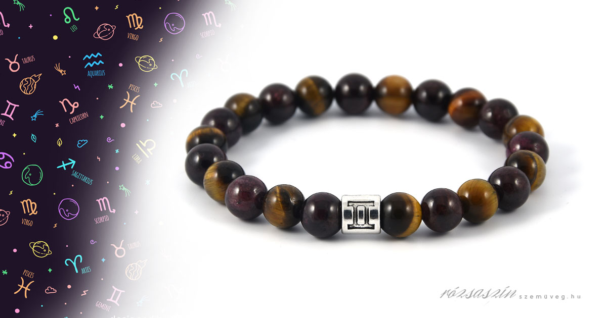 Az Ikrek ásvány karkötő Gránát Tigrisszem ásványokból készült.