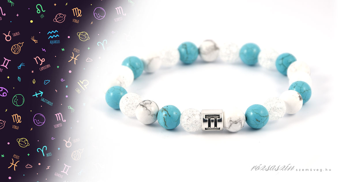 Az Ikrek ásvány karkötő Hegyikristály Howlit ásványokból készült.
