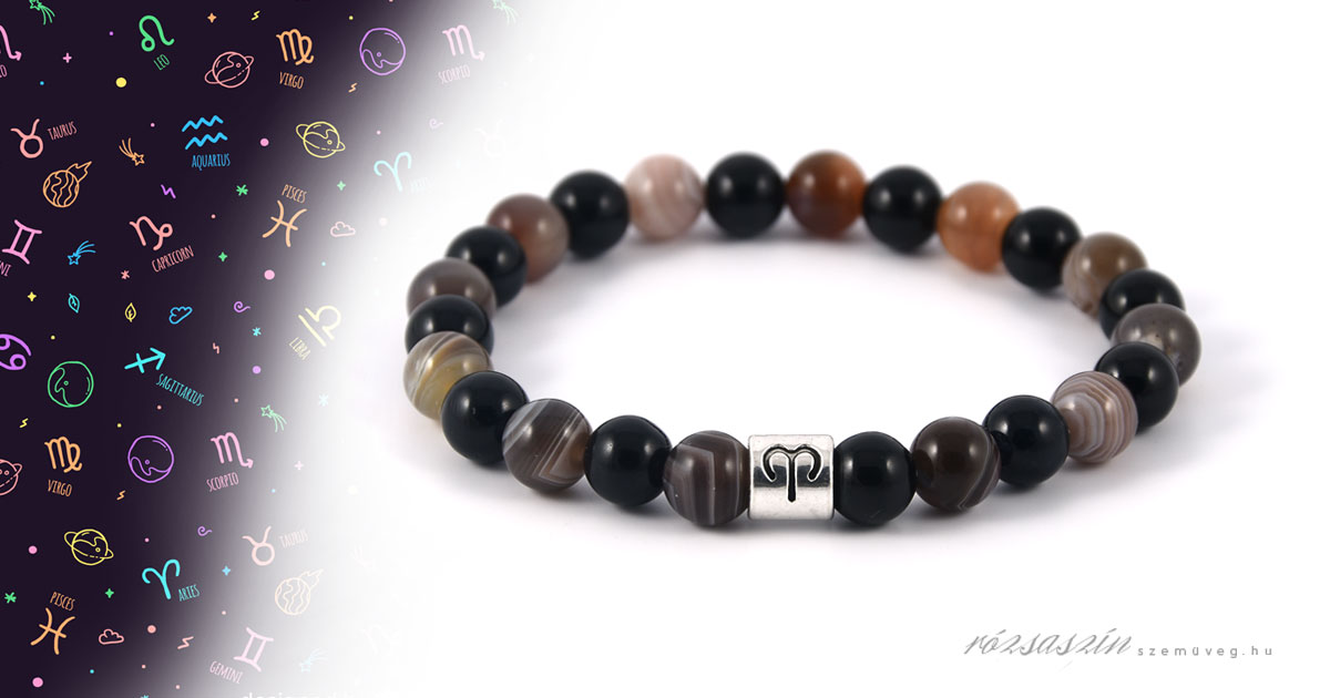 A Kos ásvány karkötő Botswana Achát, Jade ásványokból készült.