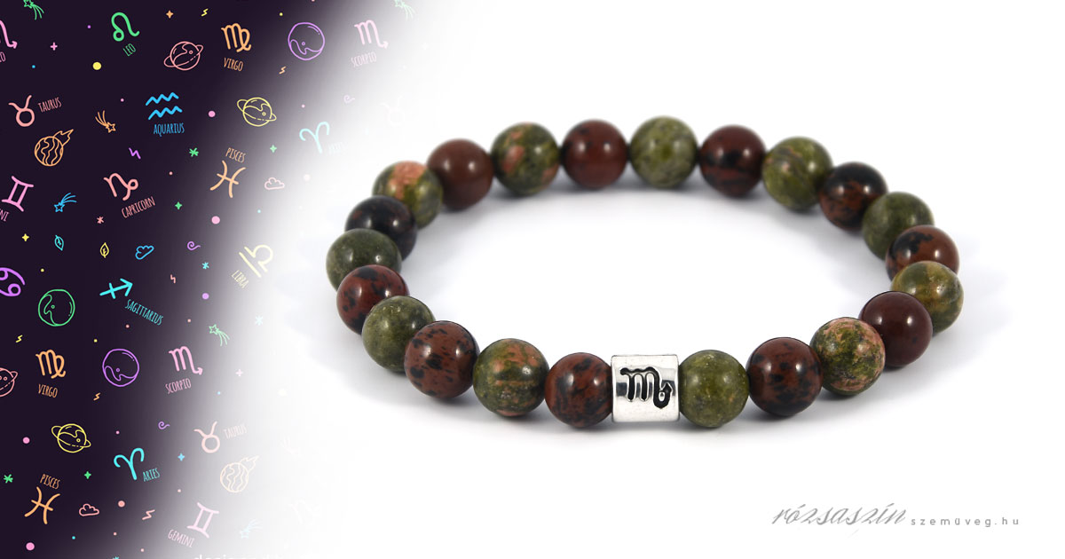 A Skorpió ásvány karkötő Obszidián Unakit ásványokból készült.
