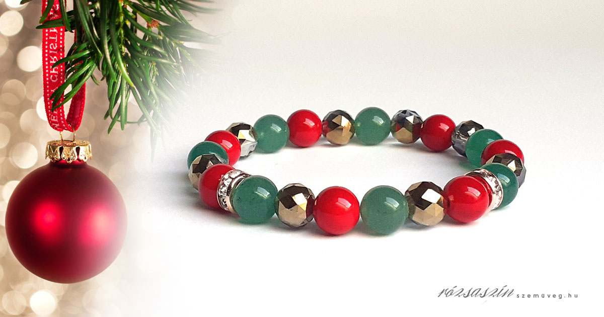 Ünnepi hangulat ásvány karkötő a következő ásványokat tartalmazza, Aventurin, Jade.